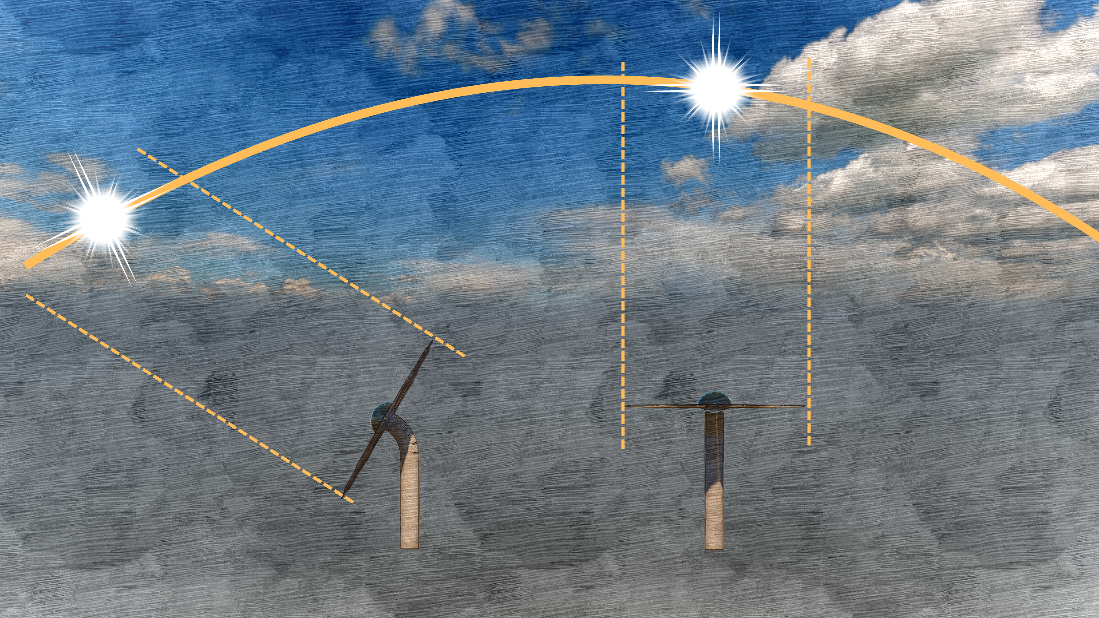 - En el solsticio de junio, el sol se oculta detrás del marcador más al norte.